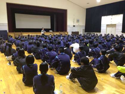 乗鞍最後の夜です。生徒たちが静かに講堂に入場し、先生の話を聞きました。そのあとそれぞれの学級に分かれて、乗鞍最後の夜の時間を過ごしています。