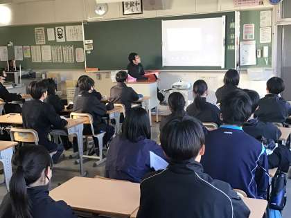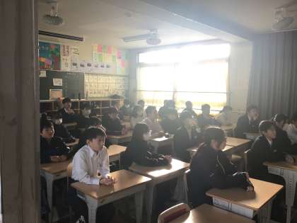 オンラインによる海外派遣報告を視聴する1、2年生の様子です。聴いている生徒たちは興味津々な様子で3年生の先輩の発表を視聴していました。こうした活動に参加することができればとても良い経験になりますね。後輩の皆さんも機会があればチャレンジしてみてはどうでしょうか。