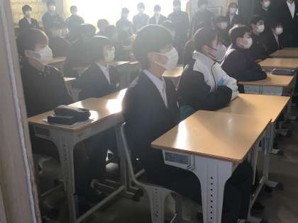 発表を視聴している各教室の生徒たちの様子です。一番上の写真は3年生です。