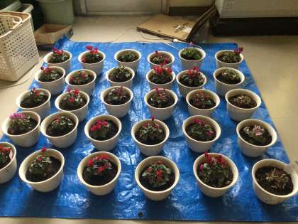 3枚目の写真は1、2、3学級の子たちが植えた鉢植えです。大きく育つといいですね。