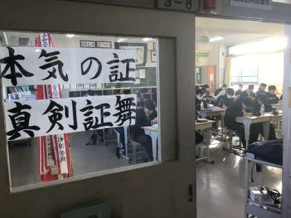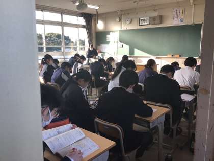 今はテスト週間ですので、テスト週間中の朝の活動はテスト勉強です。どの学年も8時15分に静かにテスト勉強を始めていました。1枚目の写真は2年生、2枚目と3枚目の写真は3年生教室の様子です。2年生は最高学年に近づいてきました。3年生は受験真っ盛りです。どちらも真剣な空気が教室に満ちていました。