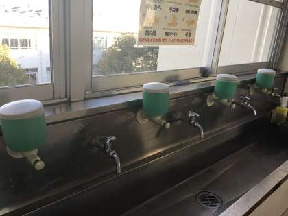 3年3組の前にある女子トイレのスリッパ。並べ方にさりげない気配りを感じます。素敵です。また、手洗い場のアルボース(石鹸液)がしっかり補充してあります。保健委員の生徒の皆さん、ありがとう。おかげでインフルエンザもコロナも現在ゼロです。感謝。