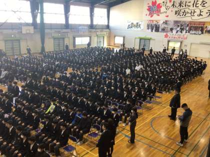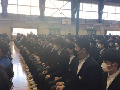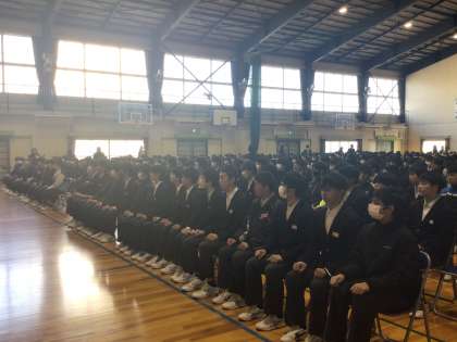 在校生も卒業生の気持ちに応えようと整然と体育館に入り、初めての全校練習は厳かな雰囲気で行われました。