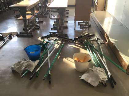 いつもと違う3年生フロア。3年生は卒業に向けてワックスがけを行っています。8クラスありますので、奇数クラスと偶数クラスに分けて2日間で行います。朝日がさす教室。なんとなく寂しさを感じる風景です。今日も良い1日にしましょう。