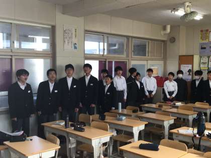 朝の活動の様子です。卒業式の歌の練習をしています。写真は1年生。歌声を通して卒業していく先輩への思いが届くといいですね。