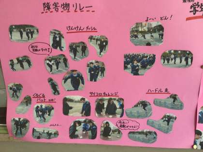 下の写真は2年生フロアの掲示物です。先日行った学年レクリエーションの写真です。2年生の生徒たちがとても楽しそうな表情で写っています。