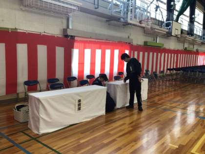 入学式を明日に控え、今日は朝から3年生が登校して会場や教室の準備などをしてくれています。3年生の皆さん、ありがとう。最高学年として学校を支えてくれて感謝します。