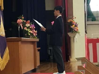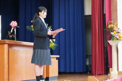2,3年生を代表して歓迎の言葉を話してくれたのは、前期生徒会長です。1年生に安心感を与えるような話しぶり、そして、これからの学校生活への期待が膨らむような内容で大変立派でした。さすが最高学年。頼もしい存在です。ありがとう。