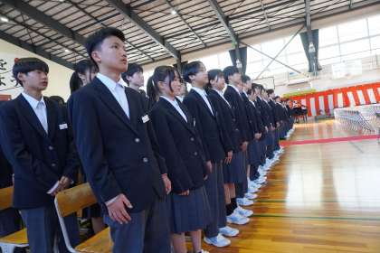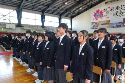 1年生を後ろで支える2,3年生の姿です。今日は入学式とともに始業式でもあります。昨年度からいる生徒たちはそれぞれ新学年への進級を認定されました。先輩らしい良い顔をしています。末中をしっかりと支えてください。1年生をリードしながらよろしくお願いします。