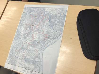 写真は2年生です。学校から自宅の場所を確認して、自分の通学路を確かめています。