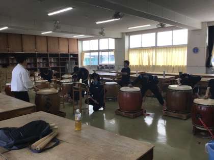 ⚫︎和太鼓は2つの部屋に分かれて、2名の地域指導員の先生が演奏指導と技術指導をしてくださっていました。和太鼓の演奏レベルはぐんぐん上がっており地域から大人気で、お祭りなどでの演奏依頼をひっきりなしにいただいています。