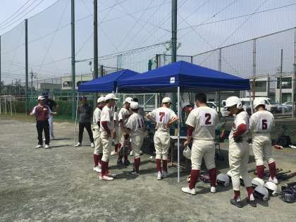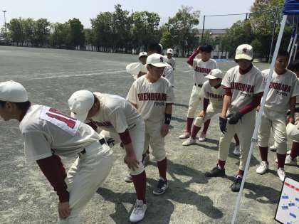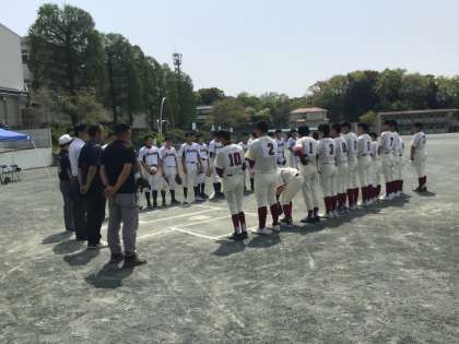 グラウンドでは本校の野球部と朝日丘中学校の野球部との練習試合が行われていました。数人の地域指導者の先生方が日頃の練習やこうした練習試合、大会等で、技術指導や審判などに関わってくださっています。保護者の方の中でボランティア的に指導に加わってくださっている方もいらっしゃるとお聞きしています。