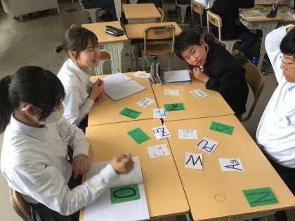 手作りの元素記号カードの裏には、その特徴が書かれています。ただカードを取るだけでなく、その特徴も確かめます。