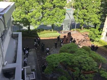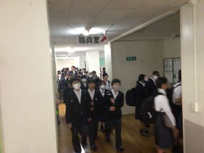 今朝の登校風景です。風が冷たく感じるせいかブレザーを着ている生徒が目立ちます。登校時はジャージでも可、体操服でも可、半袖制服でも冬服のブレザーでも長袖制服でも可です。安全のためスカートで自転車通学することは避けてください。もう少し暑くなってきたらクールビズ期間を開始します。