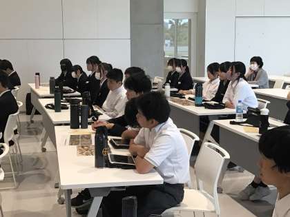 とても勉強になる時間でした。生徒は興味津々、良い表情で考えたり意見を発表したりしていました。素敵な授業をしていただいた主任主査の駒野先生、ありがとうございました。いろいろな教科の学びに通じる大切な視点を教えていただきました。