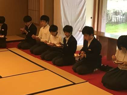 今日のお菓子は牡丹。季節ごとのお花を模したお菓子が出されます。生徒たちは美味しいと言ってお上品にいただいていました。