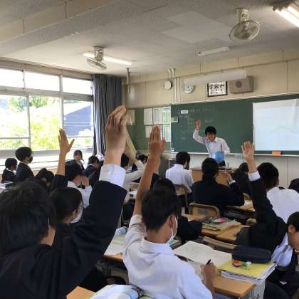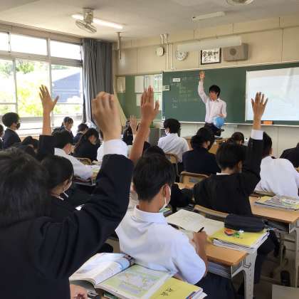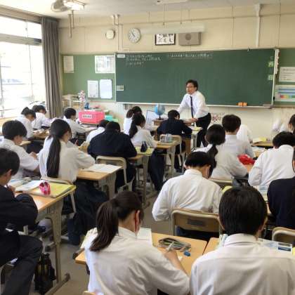 3時間目の授業の様子です。1年2組と4組が社会科の勉強をしていました。内容は地理です。