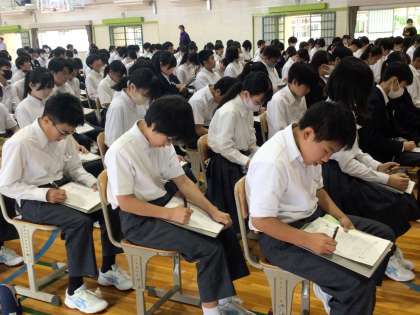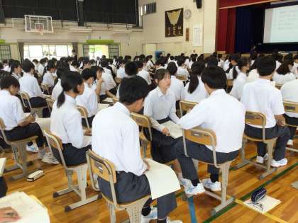5月30日(金)に2年生を対象としたマナー講座を行いました。2年生は2週間後に職場体験学習を行います。あいさつの仕方、職場での望ましい姿勢、態度など大切なことを教えていただきました。講師の先生は厳しくも温かい声掛けで生徒が大切なことを学べるよう熱心にご指導くださいました。