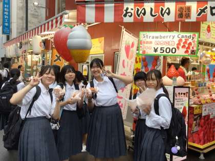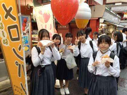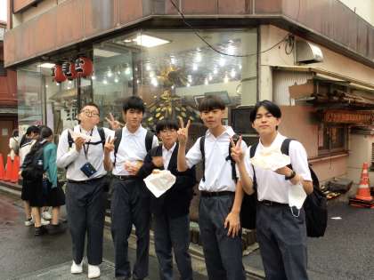 浅草にきました。傘なしで散策ができました!班ごとに食べたり、買ったり。たのしそうです。