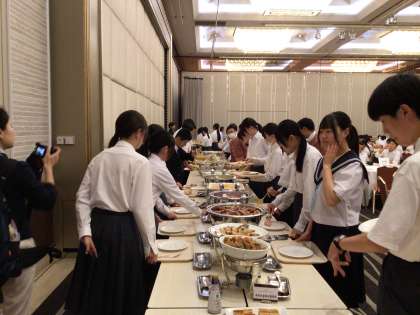 朝食会場の生徒たちが集まってきました。しっかり食べて元気に活動しましょう!