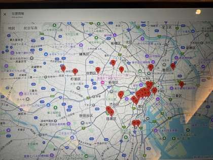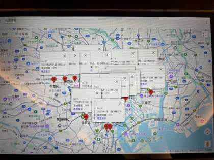 10時現在の生徒の動き。生徒には班に一台スマホを持たせています。計画表と照らし合わせて変なところにいるようなら乗り間違えなどの可能性もあるので、本部の先生が連絡を入れたりします。