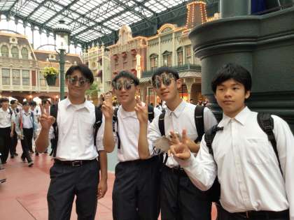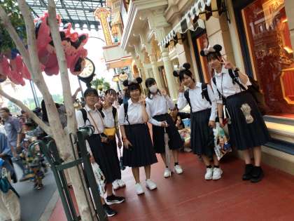 夢の国にきました。ディズニーは薄曇りとの昨日の予報に期待していたのですが、傘が手放せない夢の国になりました。が、あくまでも小雨。生徒たちはさっそく張り切って活動しています。楽しみましょう!