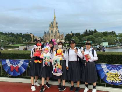 生徒たちは1000円のミールクーポンを2枚持っています。お土産には使えないクーポンなのでしっかり食事をとってくださいね。今日は雨だったせいか、いつもよりアトラクションの待ち時間も短めです。「スプラッシュマウンテンに5分で乗れました!」と報告してくれた子たちがいました。生徒たちは元気にディズニーランドを楽しんでいます。