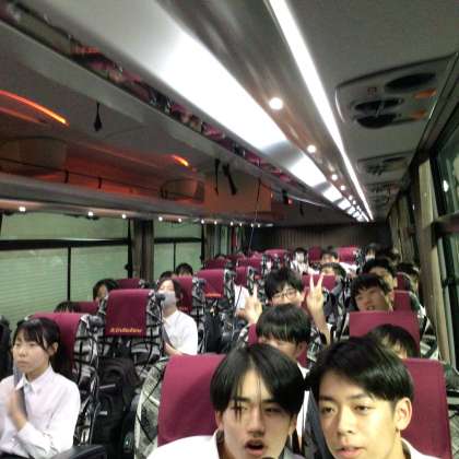 順調に豊田を目指しています。朝は眠そうだった生徒たちも、今はとても元気です。1号車は、ただいまみんなでカラオケ合唱大会。選曲が絶妙です。名もなき歌、島人ぬ宝、夏祭りなど、2000年前後の曲が多いです。彼らが生まれる前に流行した曲で不思議です。お家の方がよく聴いていて、馴染んでいるから歌えるのでしょうか。面白いです。岡崎が近づいてきました。