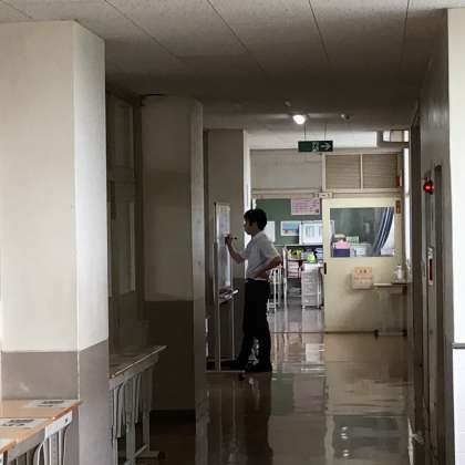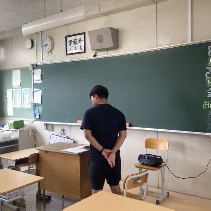 合唱曲が教室に流れる中、先生たちは静かに1日を始めています。