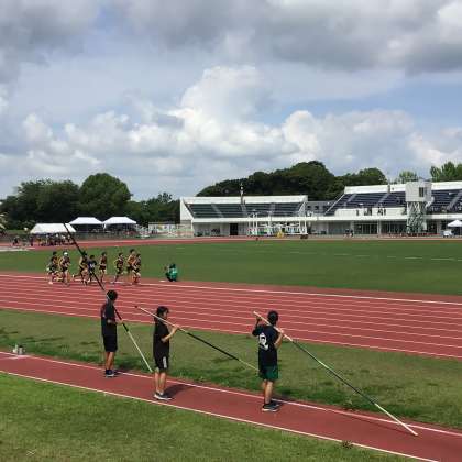 豊田市運動公園で行われている陸上の大会の様子です。それぞれの種目に出場する選手の皆さん、頑張ってください!今日も暑いです。水分補給をしっかりね。