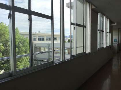 今朝の廊下の窓の開け具合はこんな感じです。風の強さ、雨が降ってきそうかどうか、寒さ、季節によって開ける幅が違っています。学年主任だったり、担任の先生たちであったり、校務主任であったり、生徒が登校してきたときのことを考えて廊下や教室の窓を開けてくれている先生たちがいます。