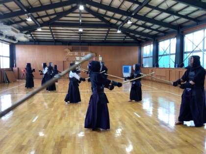 剣道部の市内大会は来週から始まります。武道場での練習の様子です。