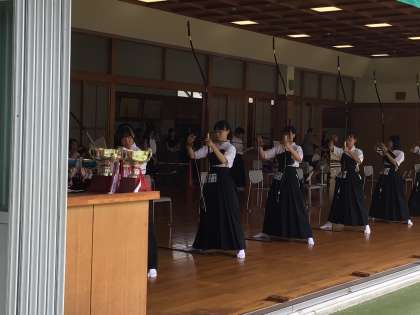 猿投の豊田市総合運動公園球技場で行われている弓道の大会の様子です。先生たちも何人か応援に駆けつけてくれました。男女ともにAチームが団体3位、男子個人で敢闘賞に入賞した生徒もいます。健闘が光りました。このあと行われる西三大会でも頑張ってください!