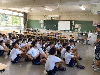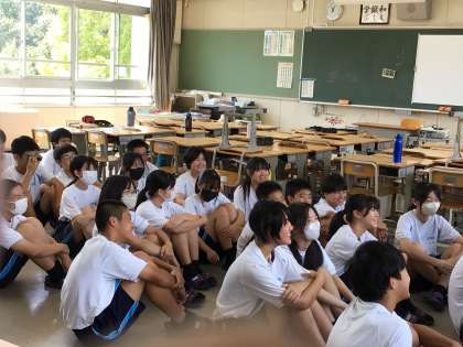 上の2枚の写真は2年生教室の様子です。体育祭に向けて、2年生の学年種目をどんなものにしたいか、先生と先生と生徒たちが一緒に考えていました。みんな楽しげな表情です。テストが終われば9月下旬には合唱コンクール、10月終わりには体育祭があります。楽しみですね。