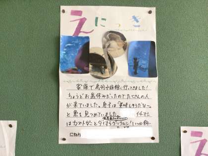 夏休み中は、授業はありませんが先生たちは普通に勤務です。休む時はきちんと休暇を取得して休みます。いつもなかなか休めない先生たちですが、家族のための時間を作ることができた先生もいるようです。先生たちの夏休み絵日記が学年掲示板に貼ってあります。生徒の皆さんは掲示板をぜひのぞいてみてくださいね。