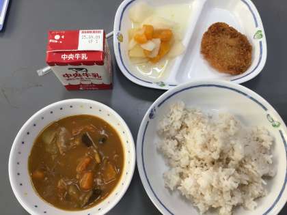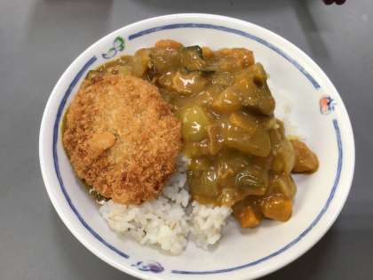 昨日生徒たちに全校集会で話をしたカツカレーです。どどんとカツカレー。しかも、カツは柔らかいヒレカツ、カレーは人気の夏野菜カレーです。しっかり食べて暑さに負けず頑張りましょう。