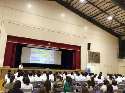 午後に行った3年生と保護者を対象とした説明会の様子です。動画やパンフレット、写真などを使って各校の先生方がわかりやすく説明してくださいました。