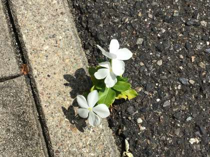 正面玄関のプランターに植えられたニチニチソウが元気に花を咲かせています。アスファルトに落ちた種から発芽したニチニチソウが、灼けるような暑さの中で可憐な花を咲かせていました。生命力がすごいです。ニチニチソウの姿から元気をもらいました。