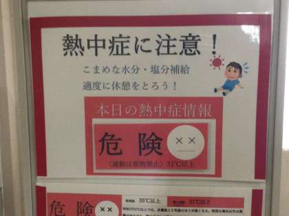 酷暑が続いています。保健室前のWBGT値を測る器械がピーピーと音を立てて警戒を知らせています。これだけ暑さが続くとさすがに体力を奪われますね。早く涼しくなってほしいものです。
