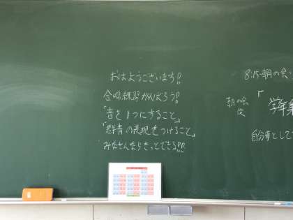 静かな教室。チョークの音。エアコンの風。今週も良い1週間でありますように。