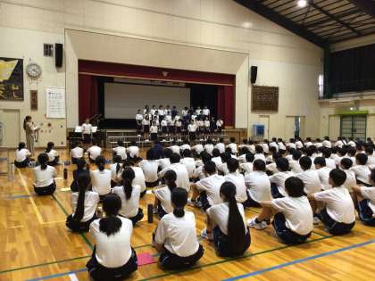 写真は昨日の6時間目の1年生リハーサルの様子です。移動の仕方や礼のタイミングなども含めて当日に向けた確認をしました。緊張しましたか?歌う方も聴く方も真剣です。