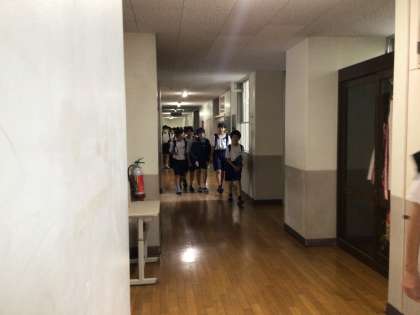 生徒の登校時間です。一番乗りの生徒たちがきました。先生たちは生徒玄関前や各学年の会で生徒たちを迎えます。爽やかな挨拶で1日を始めましょう。