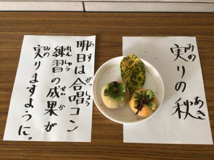 実りの秋、芸術の秋。それぞれのクラスの努力が歌声となって豊かに実りますように。生徒の皆さん、良い合唱コンクールにしましょう!