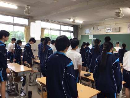 今日から10月です。写真は3年生教室です。先週に比べると長袖ジャージを着ている生徒が増えました。朝は涼しいですが日中はまだまだ暑いので、こまめに服装を調節し、体調を崩さないようにしましょう。