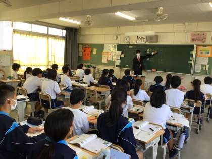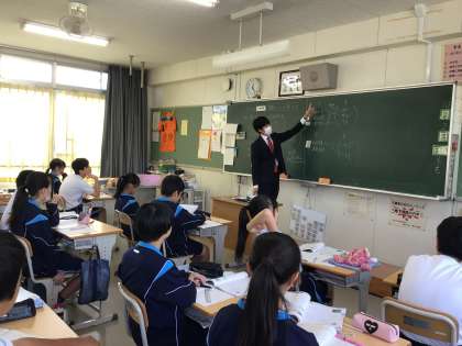 1年5組の数学の授業です。関数の導入の授業のようです。関数と言われたら何が思い浮かぶでしょうか。私は二次関数などのグラフが思い浮かびます。でも、そもそも関数ってなんでしょうか。