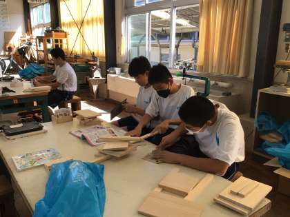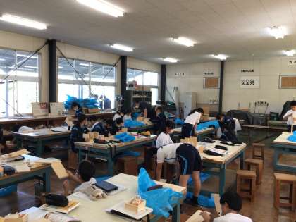 技術の授業の様子です。2年生はラジオの組み立て、1年生は木材加工を行っています。完成が楽しみですね。