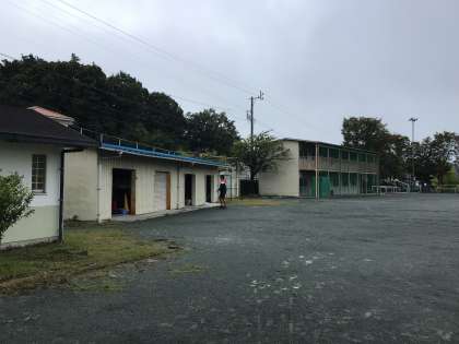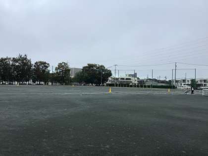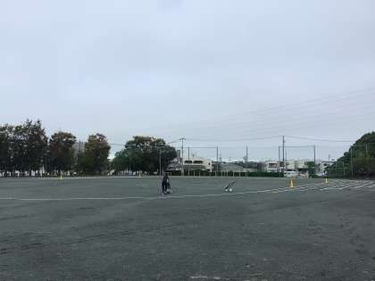 7時過ぎ、運動場では体育の先生たちがラインを引いたり道具を準備したりしています。天気はこれから回復してくる予報です。来週末の体育祭に向けて練習が進んでいます。