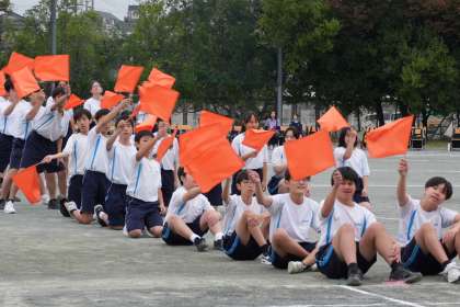 2年生の学年演技です。最後は6色の旗が美しくひらめき、運動場に「PRIDE」の文字を描きました。2年生の皆さん、誇り・プライド学年の素敵な演技でした。ありがとう!