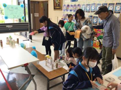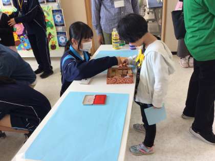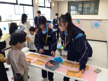 大人気の「チャレンジ 末中ブース」小さい子の目線になって優しく教える生徒たちの姿がとても良かったです。