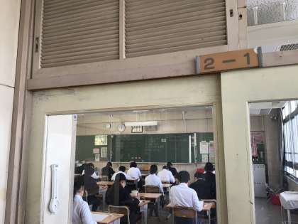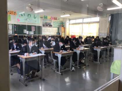 写真は2年生です。真剣に取り組んでいます。1年後は2年生の皆さんも受験生として志望校決定の時期を迎えている頃です。テスト期間の取組はどうだったでしょうか。日頃からコツコツと努力を積み上げることが大切です。今日の午後はのんびりして、しっかり疲れをとってくださいね。